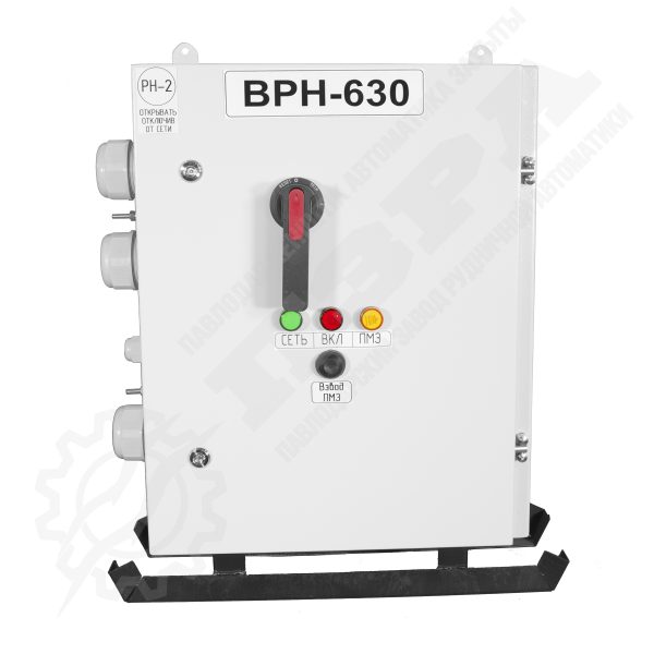 Выключатель ВРН предназначен для работы в трёхфазных сетях переменного тока с изолированной нейтралью в рудниках и шахтах, не опасных по взрыву газа и рудной пыли, для защиты электрических установок от токов короткого замыкания, а также для нечастых оперативных включений и отключений электрических цепей при нормальных режимах работы трехфазных сетей напряжением 380 и 660В, частотой 50Гц.